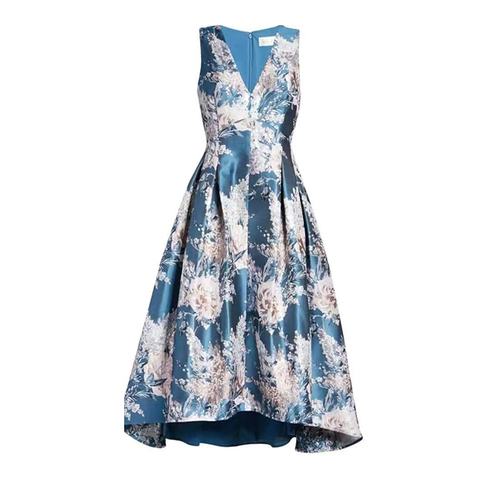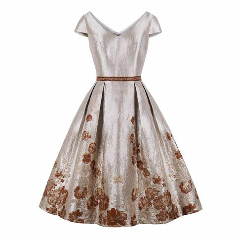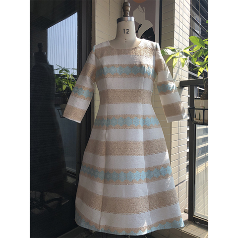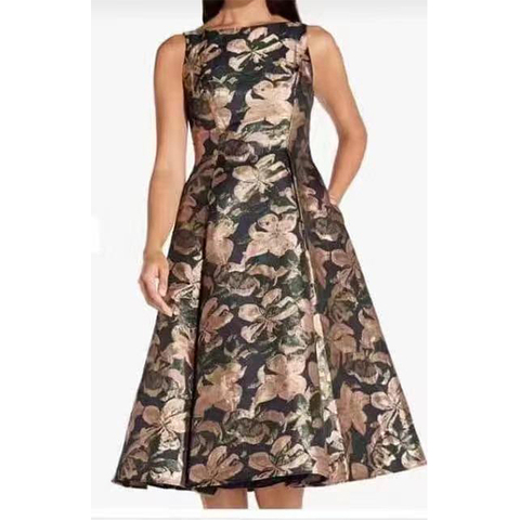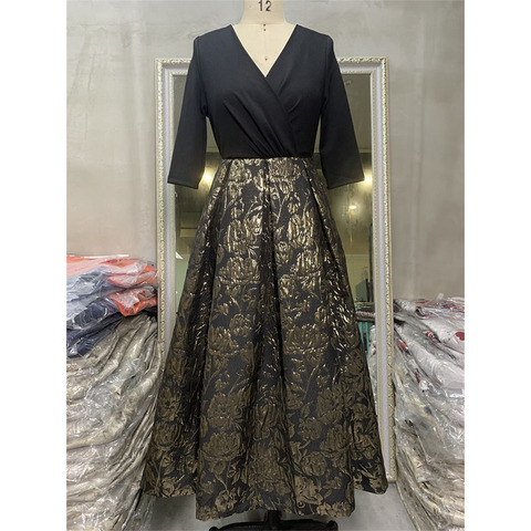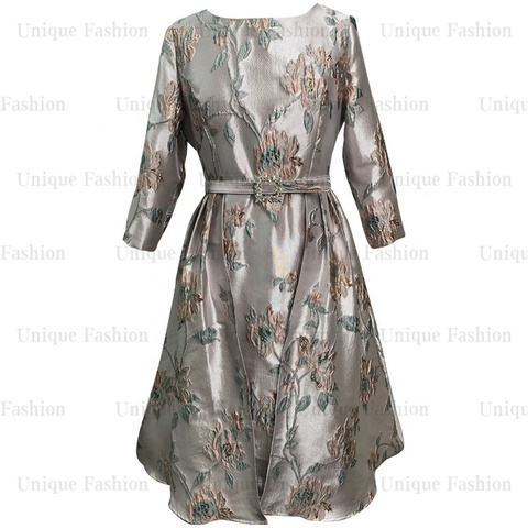 Exquisito poliéster tejido floral señora elegante vestidos casuales Spandex más tamaño brocado mujeres vestido ocasional