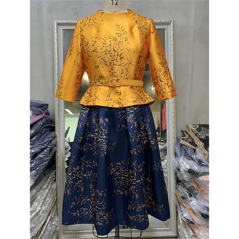 Conjuntos de talla grande para mujer, a la moda vestido largo, traje de iglesia para mujer, abrigo de brocado novedoso, trajes, traje Formal de 2 piezas